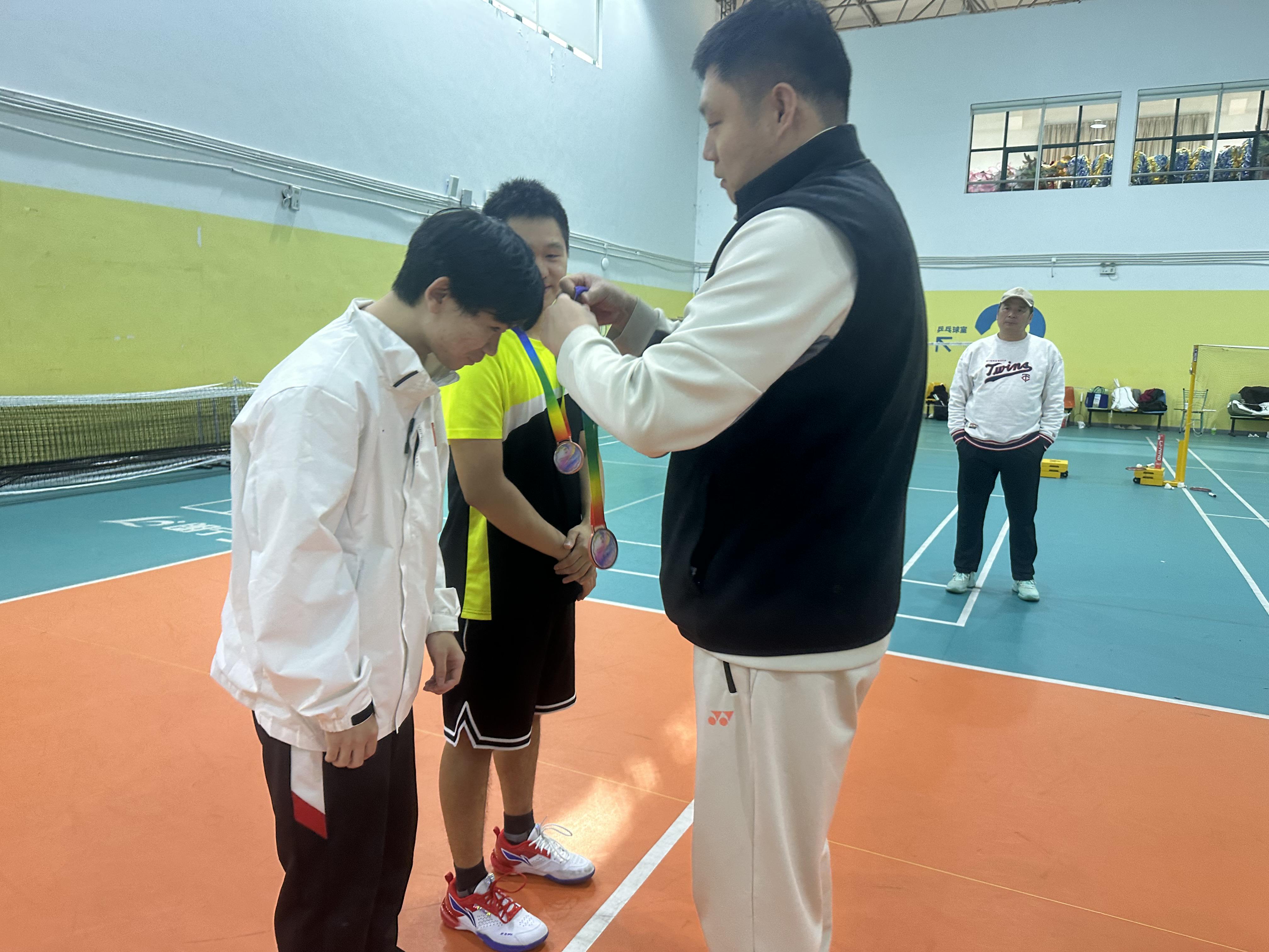 史龙飞老师为获得男双亚军的同学颁奖